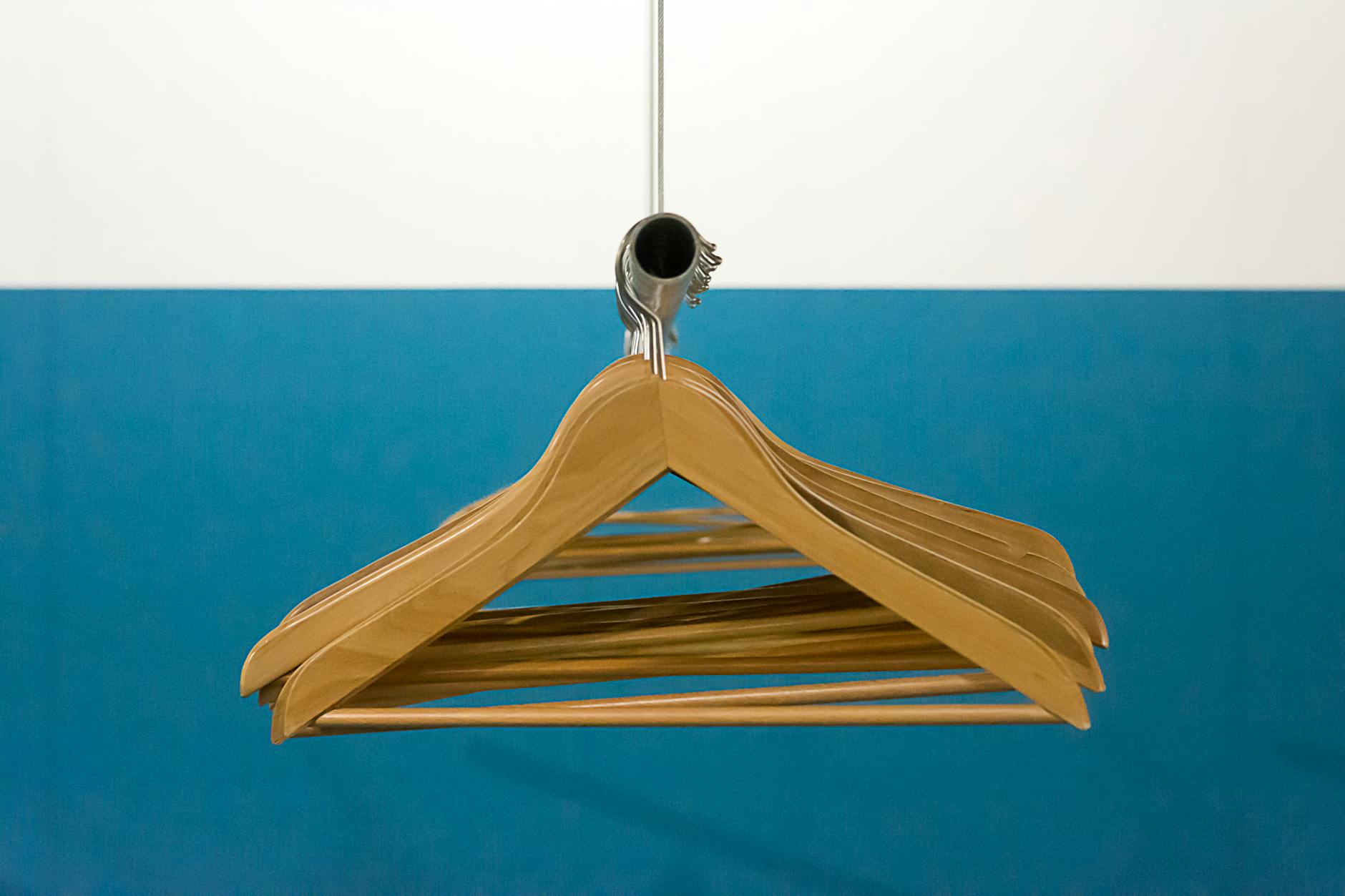- Narrow plastic hangers. Same problem as wire, less obvious because the plastic is thicker. The shoulder of the hanger is still narrower than the shoulder of the jacket, so the canvas drapes off the hanger in a way it shouldn't.